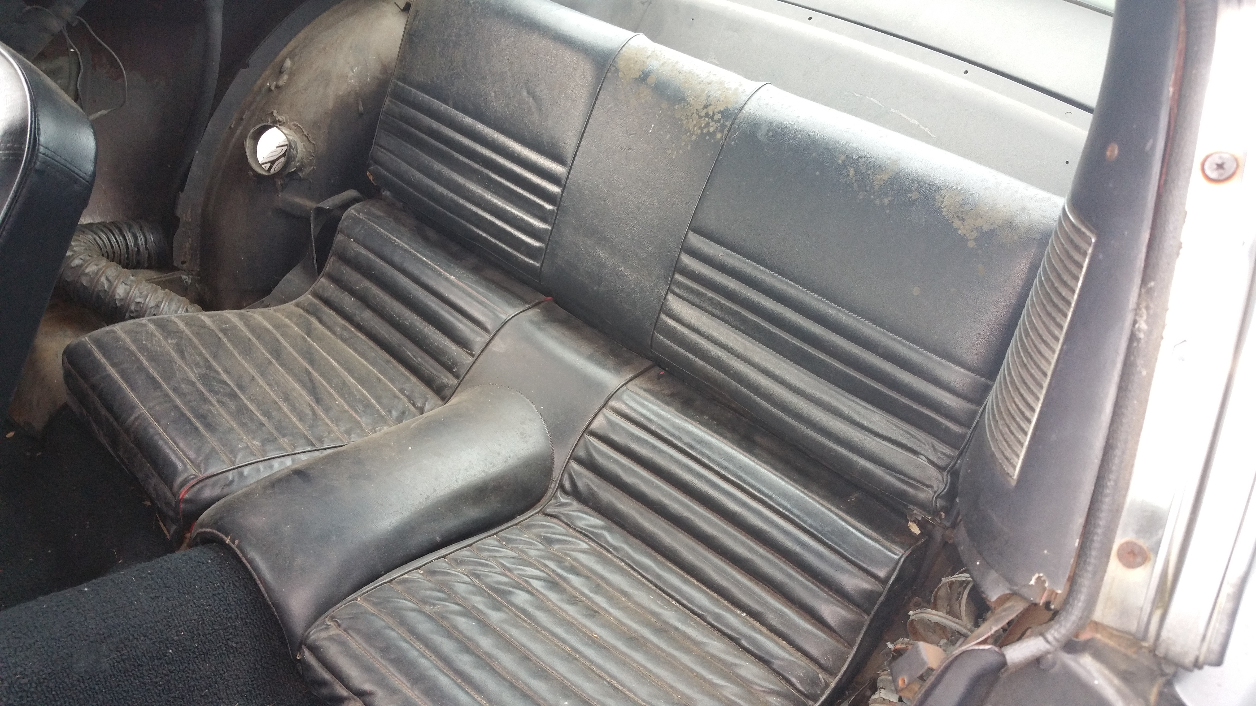 Interior – seats are near perfect (see pics).. they need a cleaning and then ready for use… back seat and fold down in great shape as well.. all carpet ok for use… the internal quarter arm rests had been removed when the Shelby air flows hoses were being added… they are missing… but all the top plastic interior fastback trim is there… dash pad (replace) and dash area needs TLC (sanding, paint, etc…). Shifter needs a cover and handle.